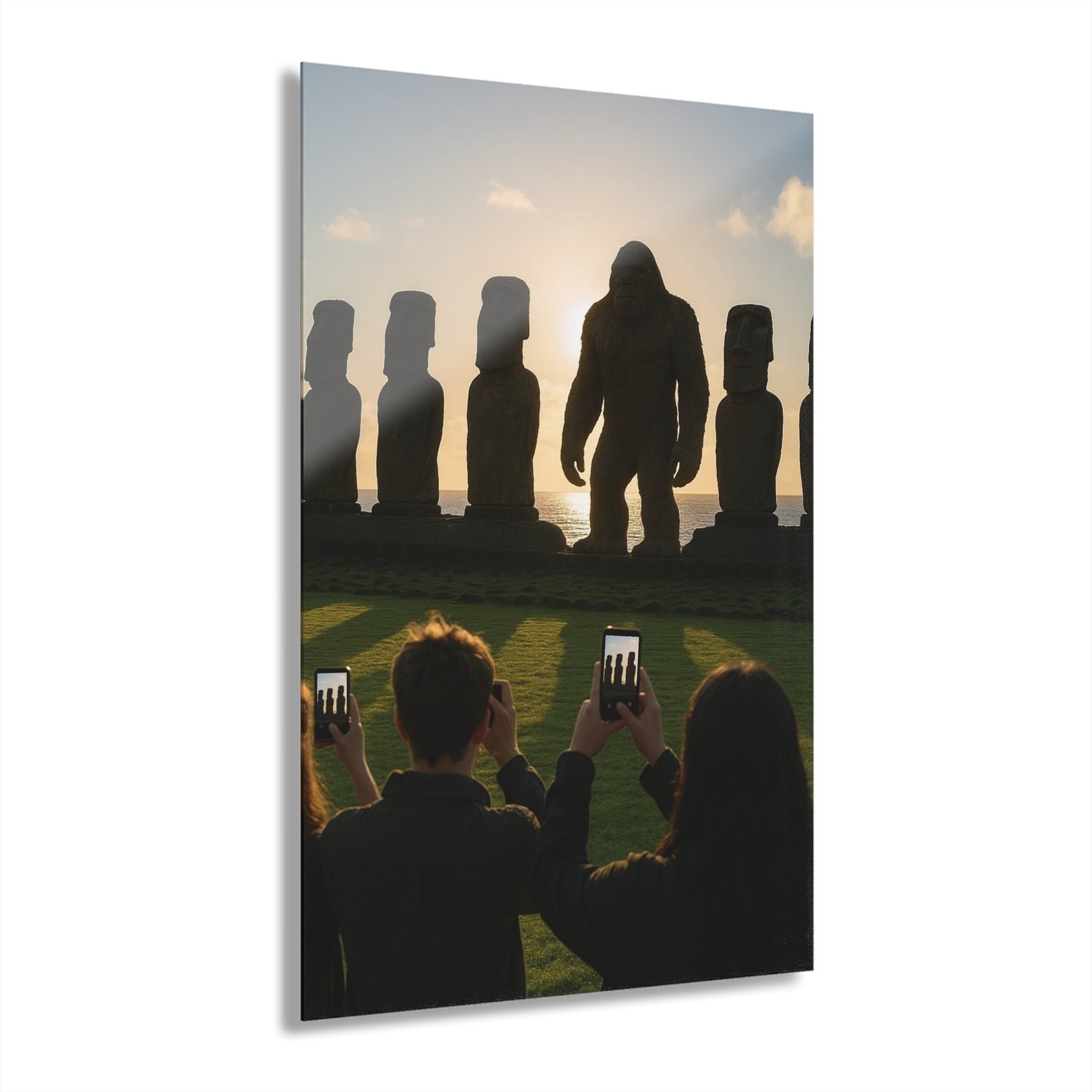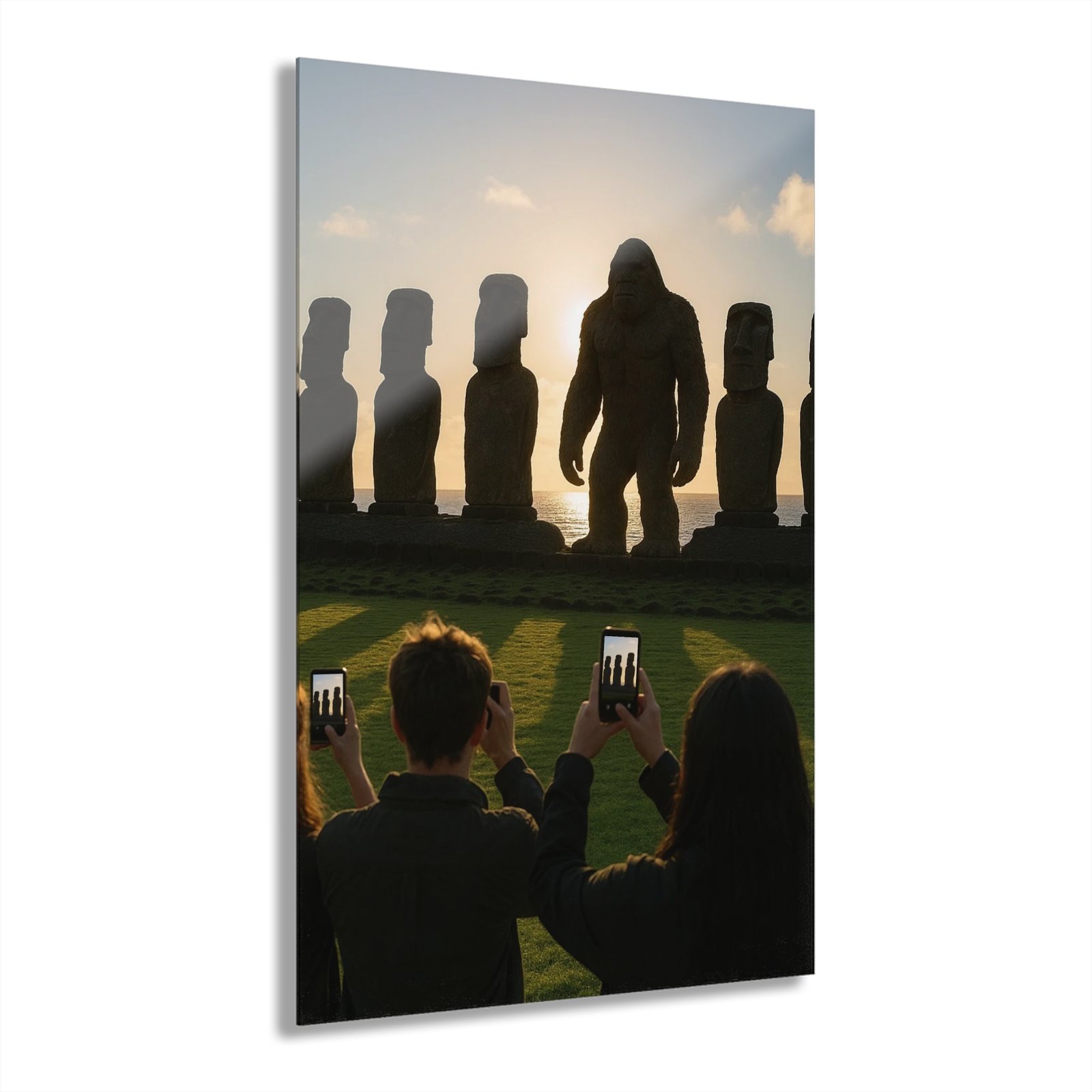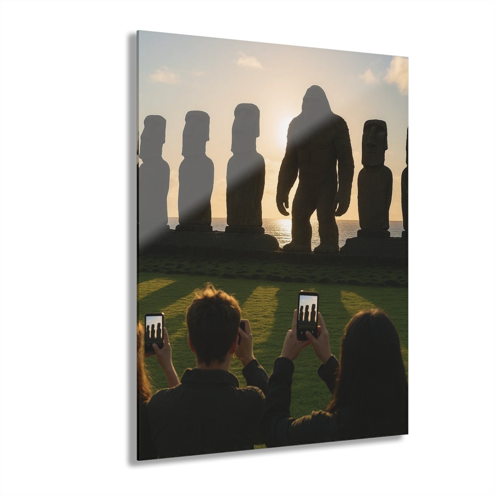 Turn folklore into fine art with the Bigfoot × Moai Acrylic Wall Art Print. The design captures Bigfoot hiding among the iconic Moai statues while tourists snap photos—yet on their phones, he vanishes, as if invisible to the lens. This surreal artwork plays with mystery and perspective, making it a statement piece that sparks conversation in any space.