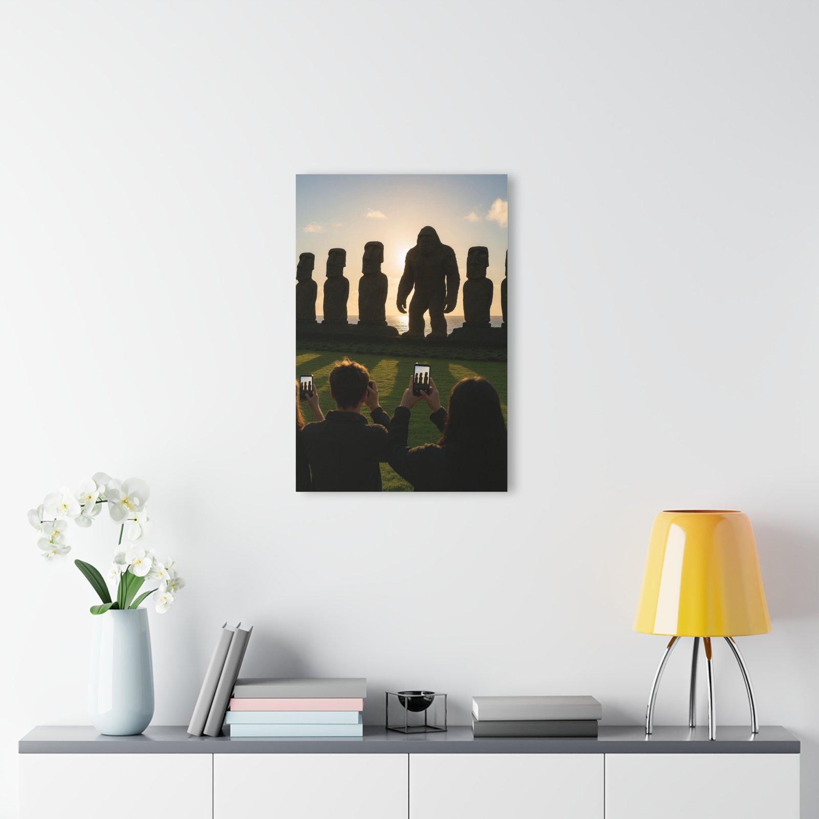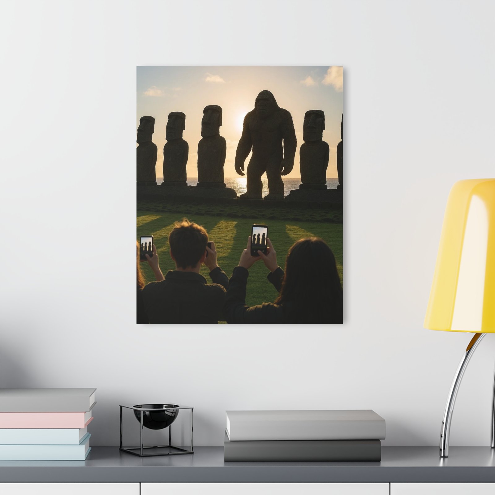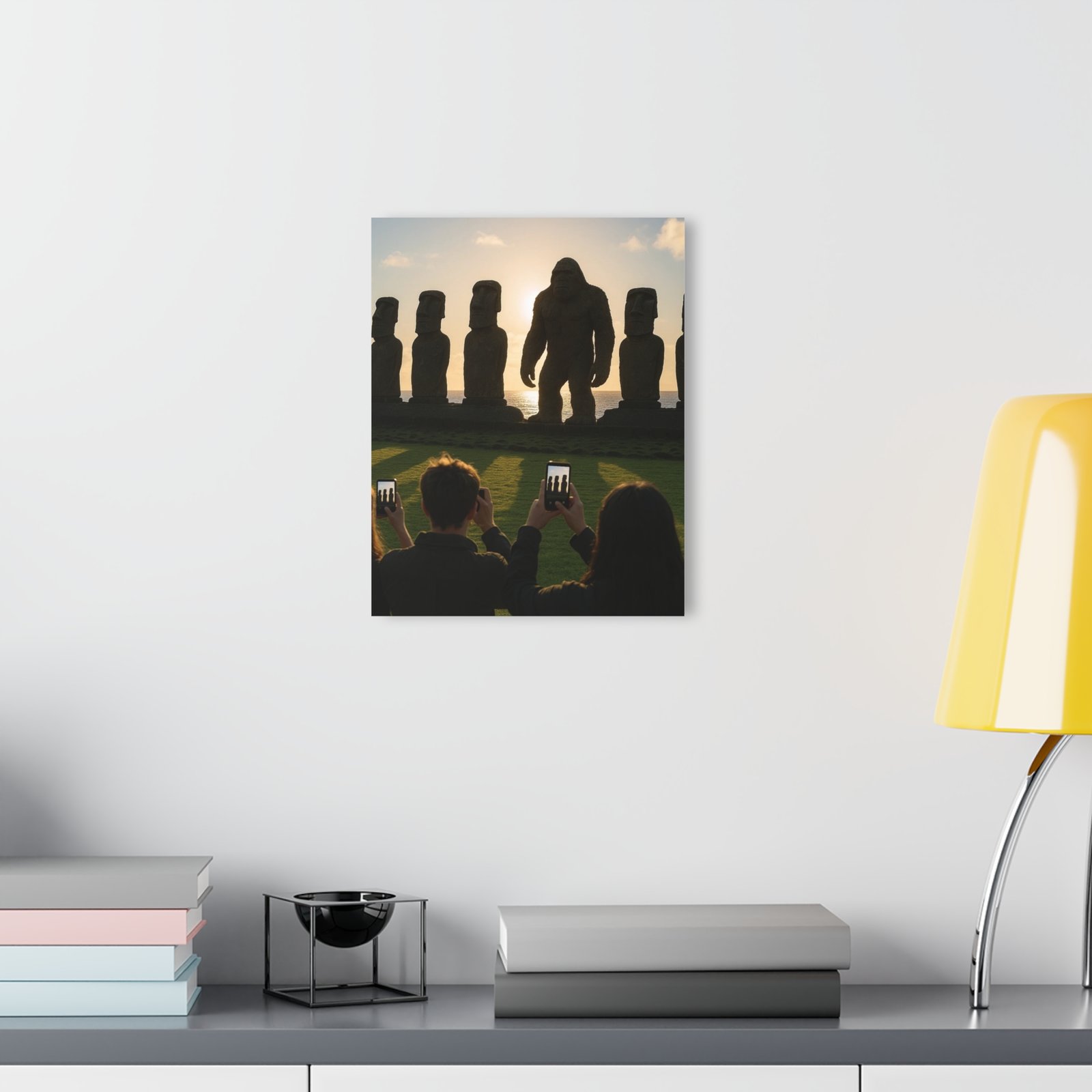 Turn folklore into fine art with the Bigfoot × Moai Acrylic Wall Art Print. The design captures Bigfoot hiding among the iconic Moai statues while tourists snap photos—yet on their phones, he vanishes, as if invisible to the lens. This surreal artwork plays with mystery and perspective, making it a statement piece that sparks conversation in any space.