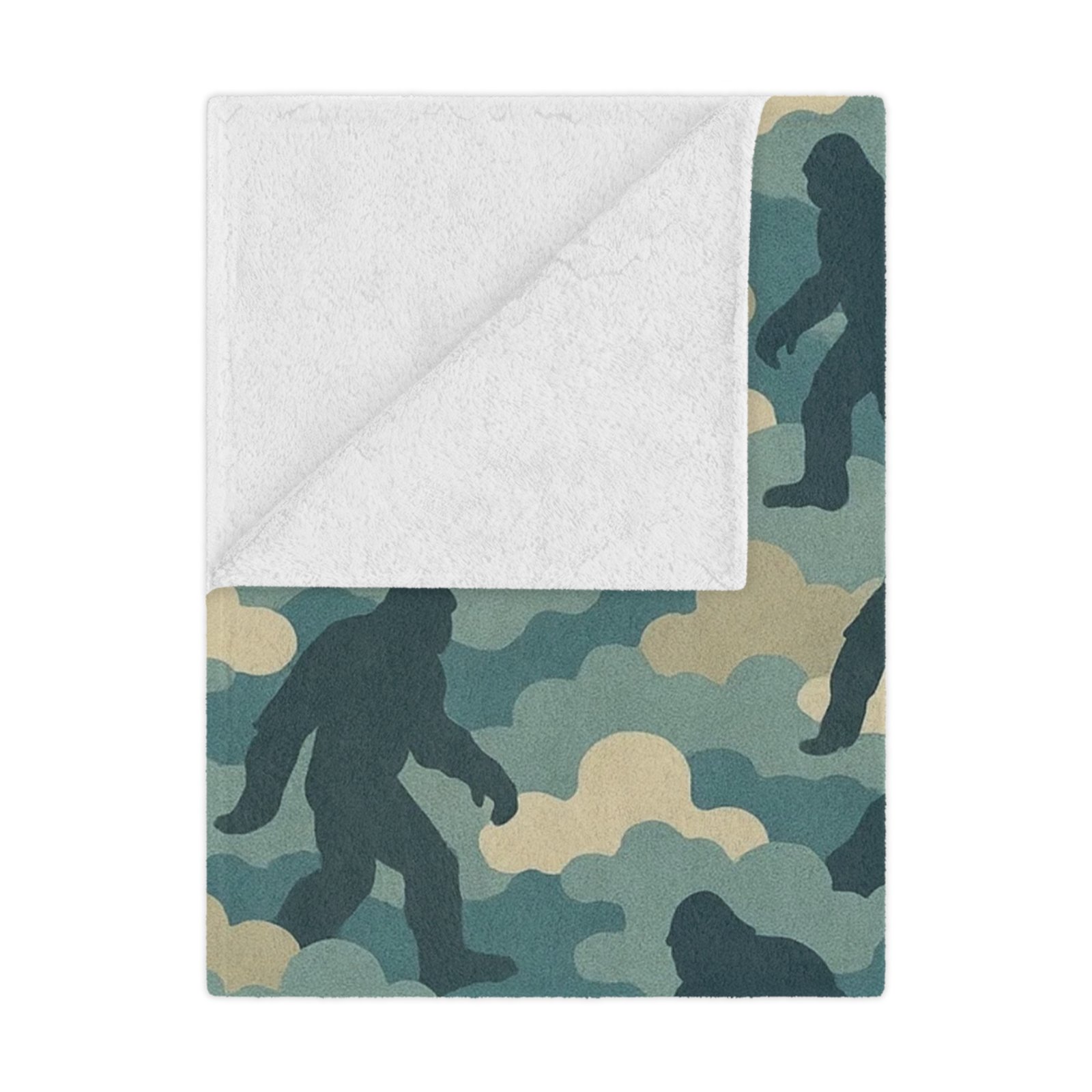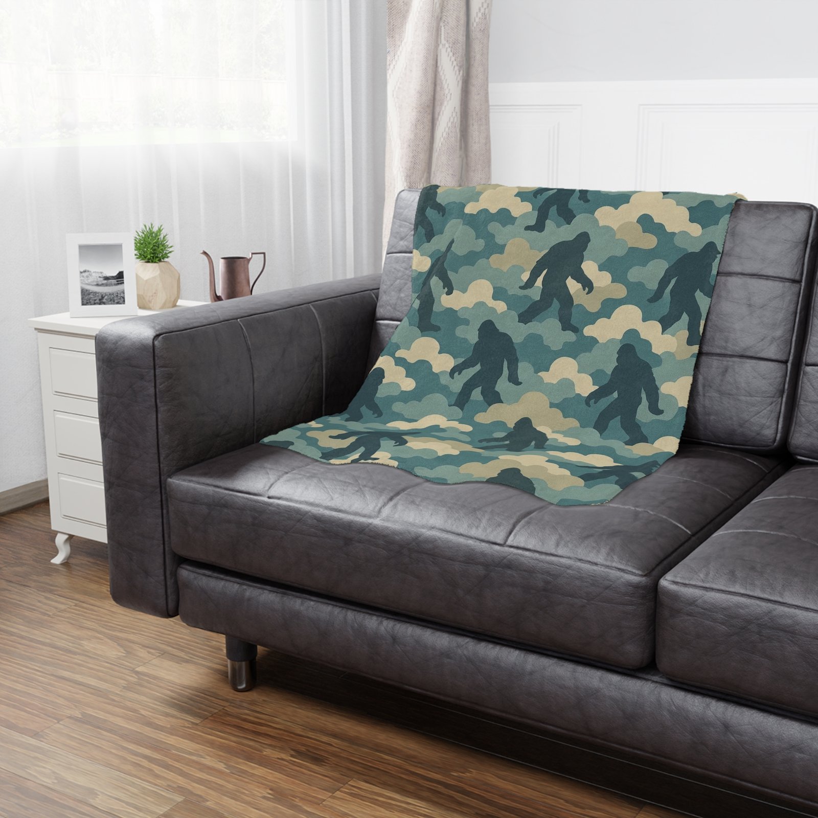 Blue & Tan Bigfoot Cloud Camo Minky Blanket | Ultra-Soft Microfiber Fleece Throw | Cozy Cabin Décor, 30 x 40′ and 50 x 60′ sizes available