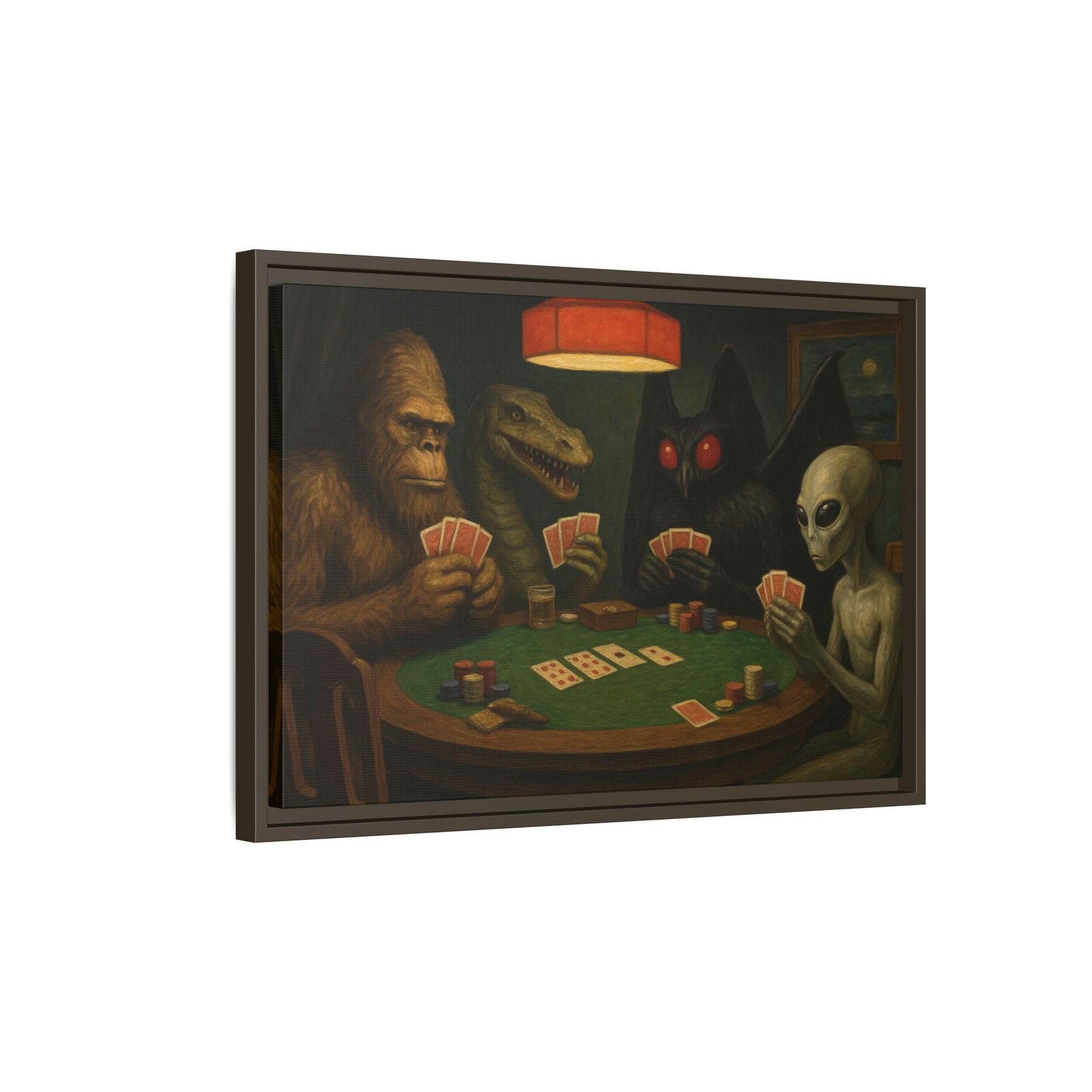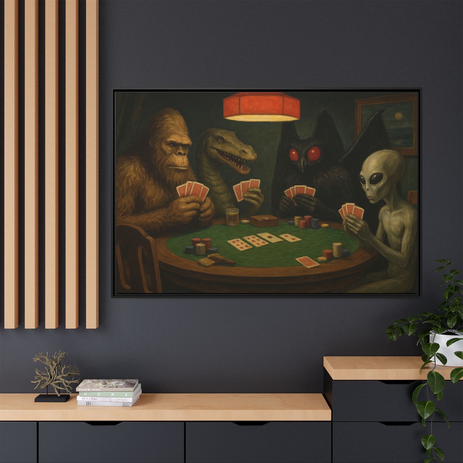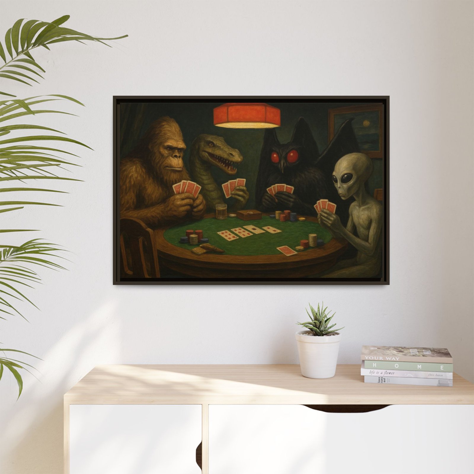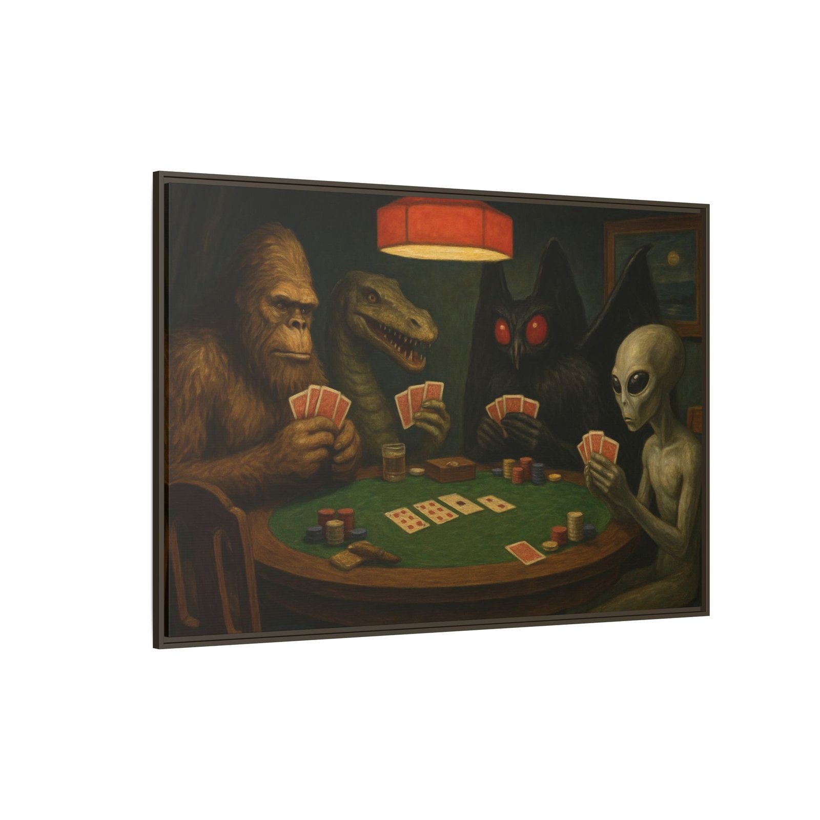 Add a splash of humor, mystery, and personality to your walls—the Cryptids Playing Poker Framed Canvas is art, nostalgia, and a guaranteed conversation piece all in one.