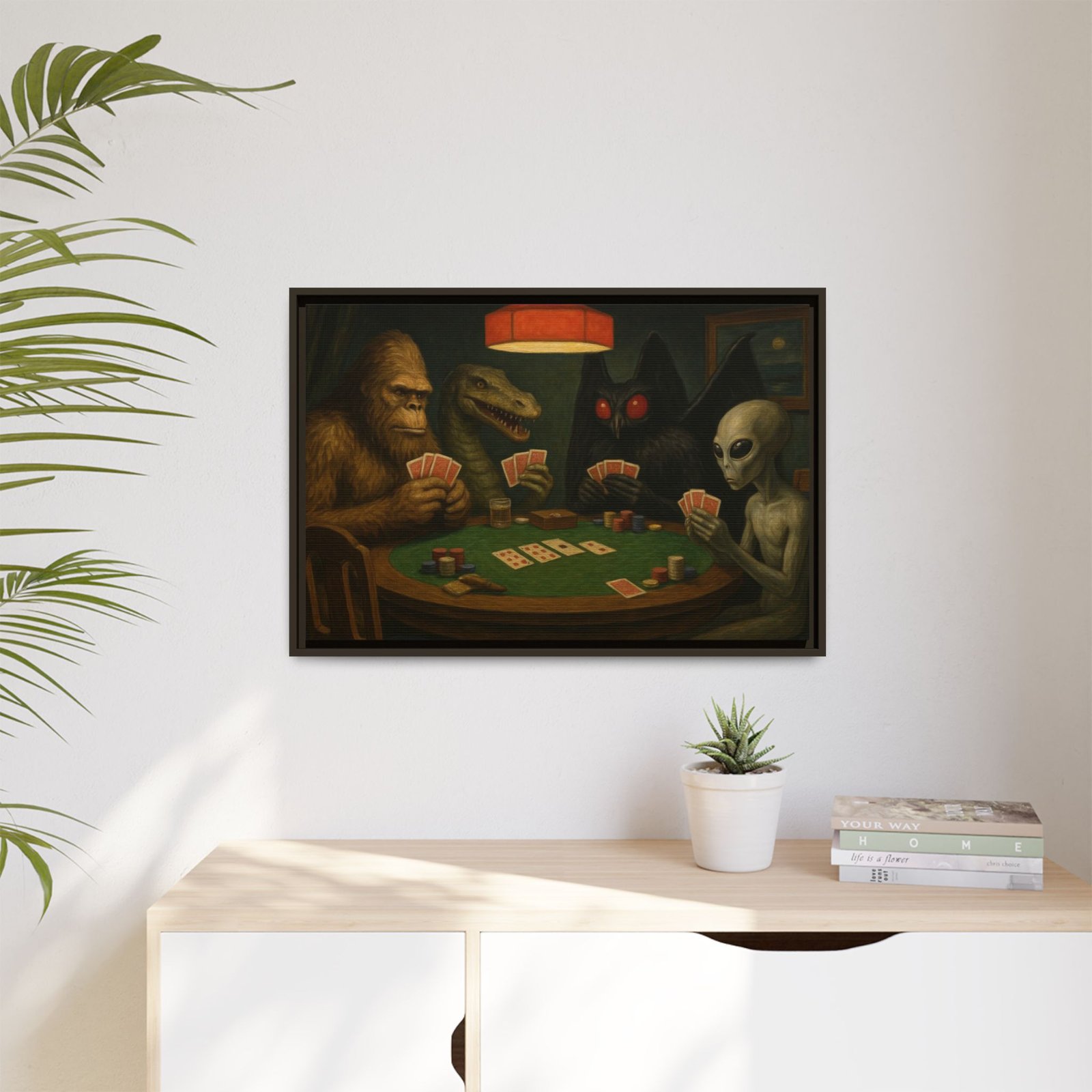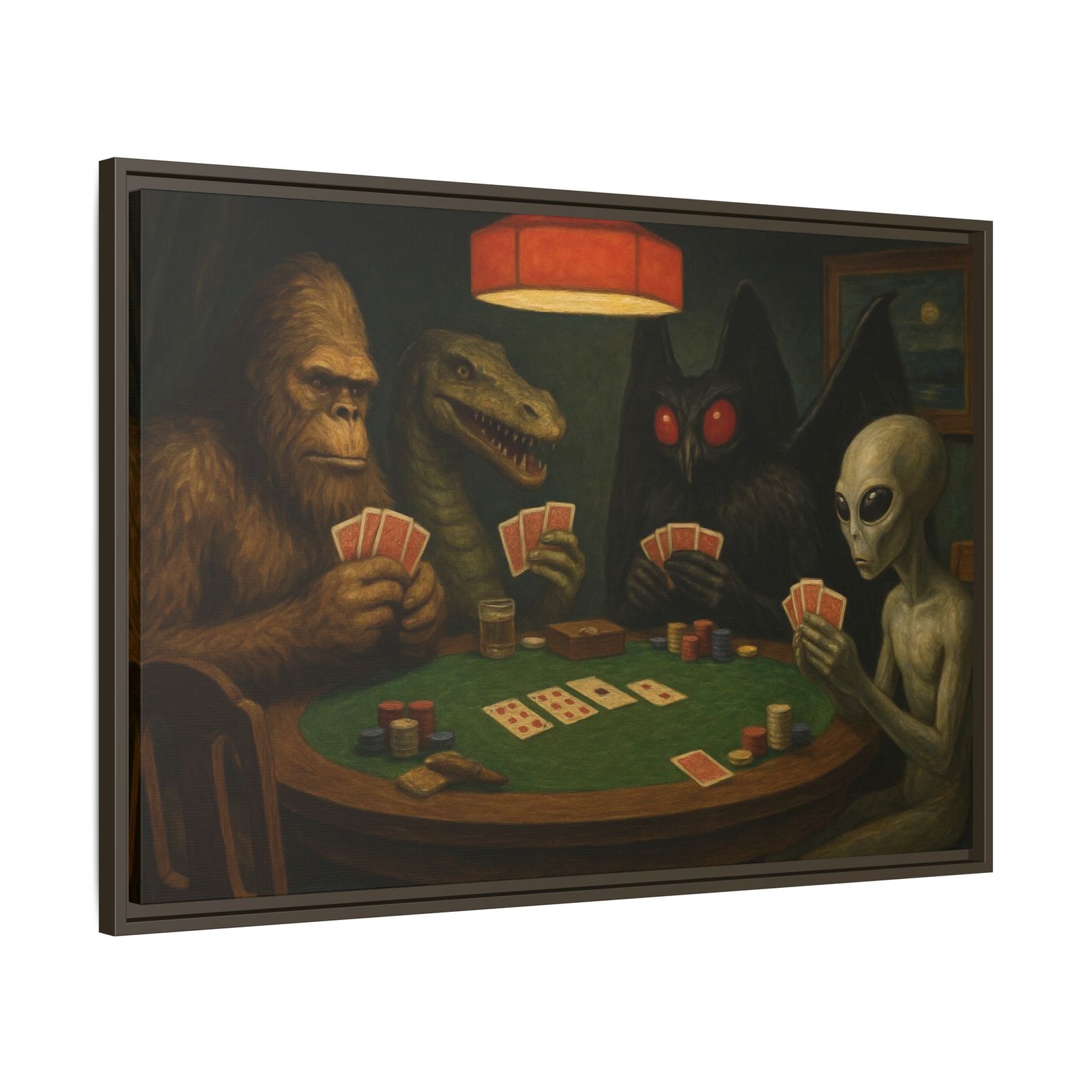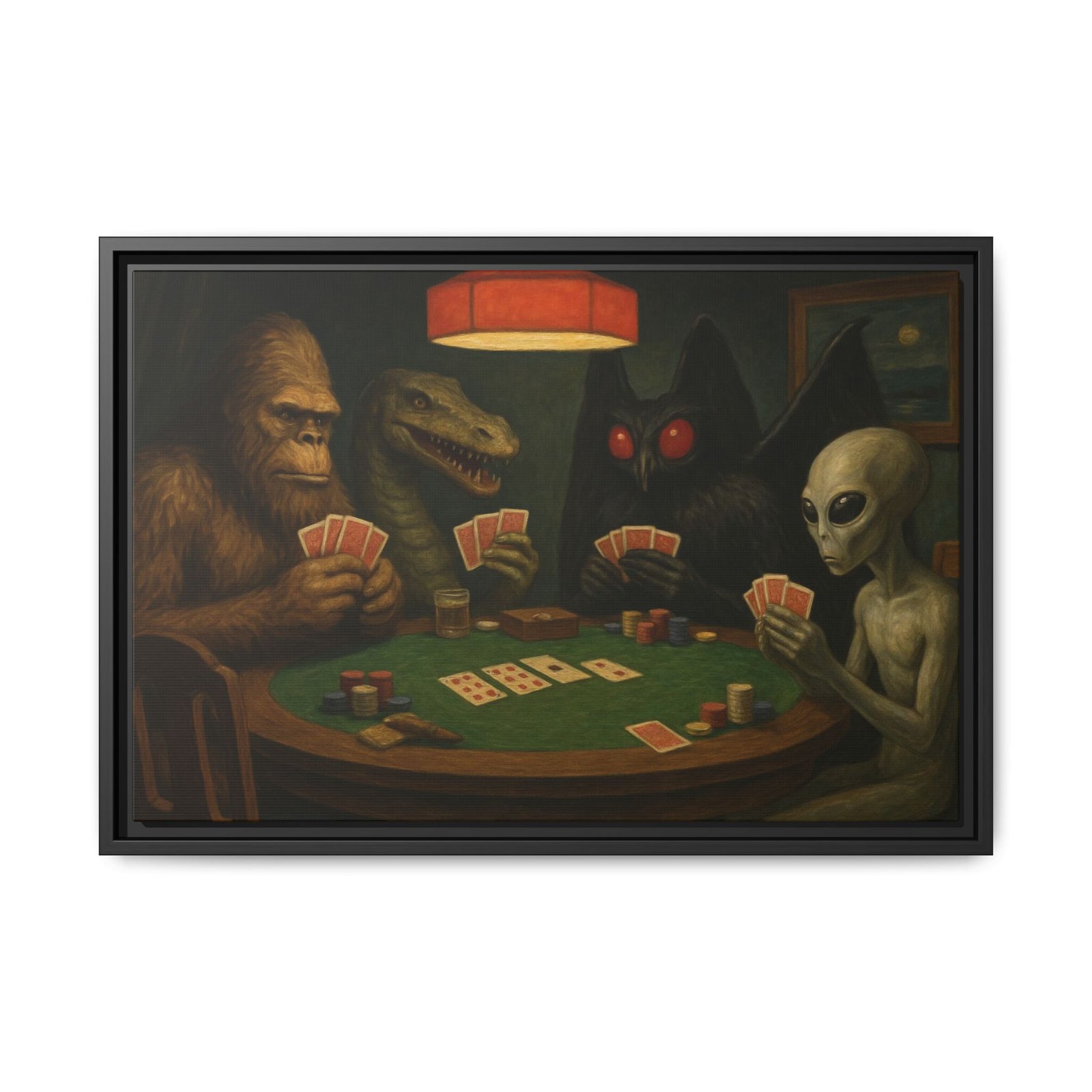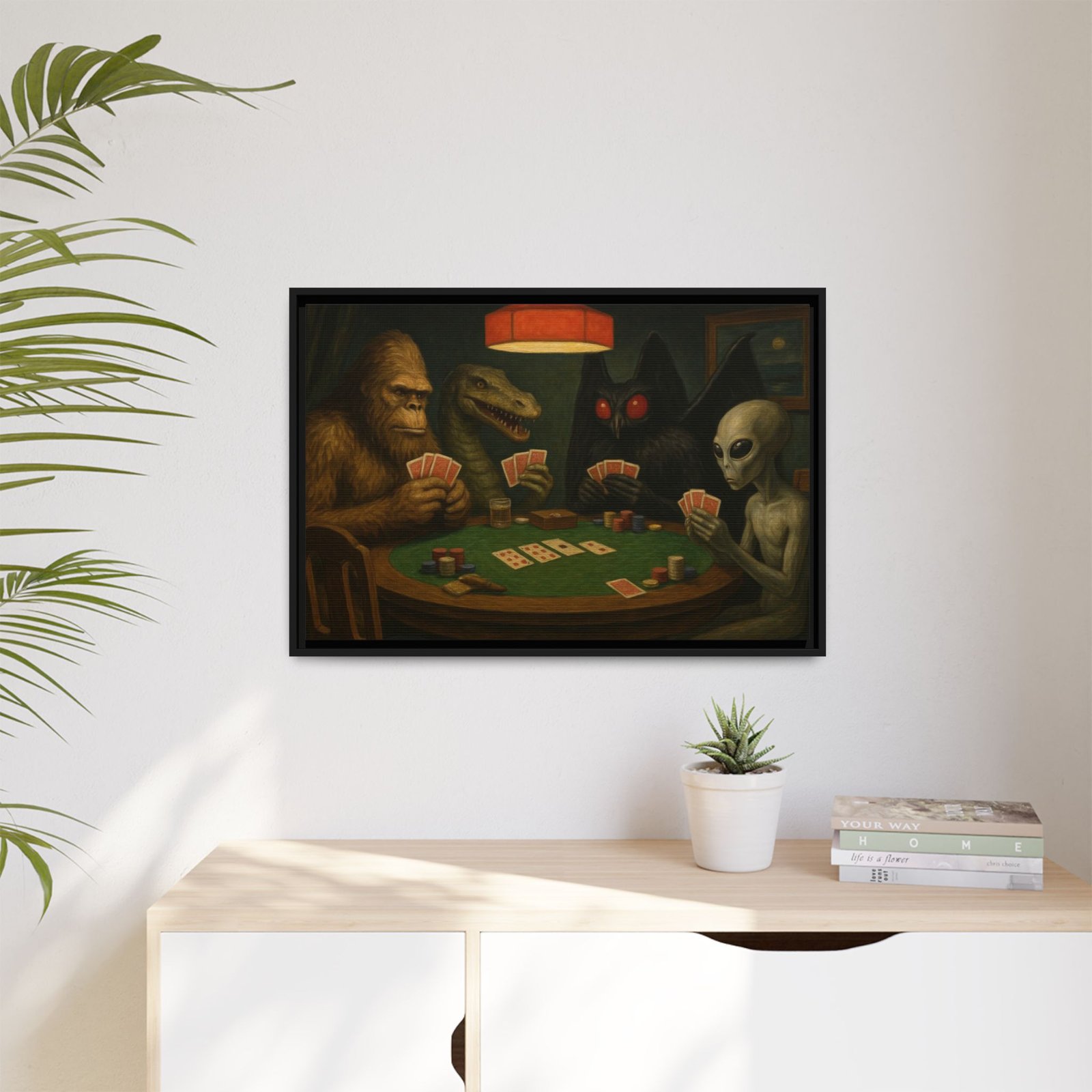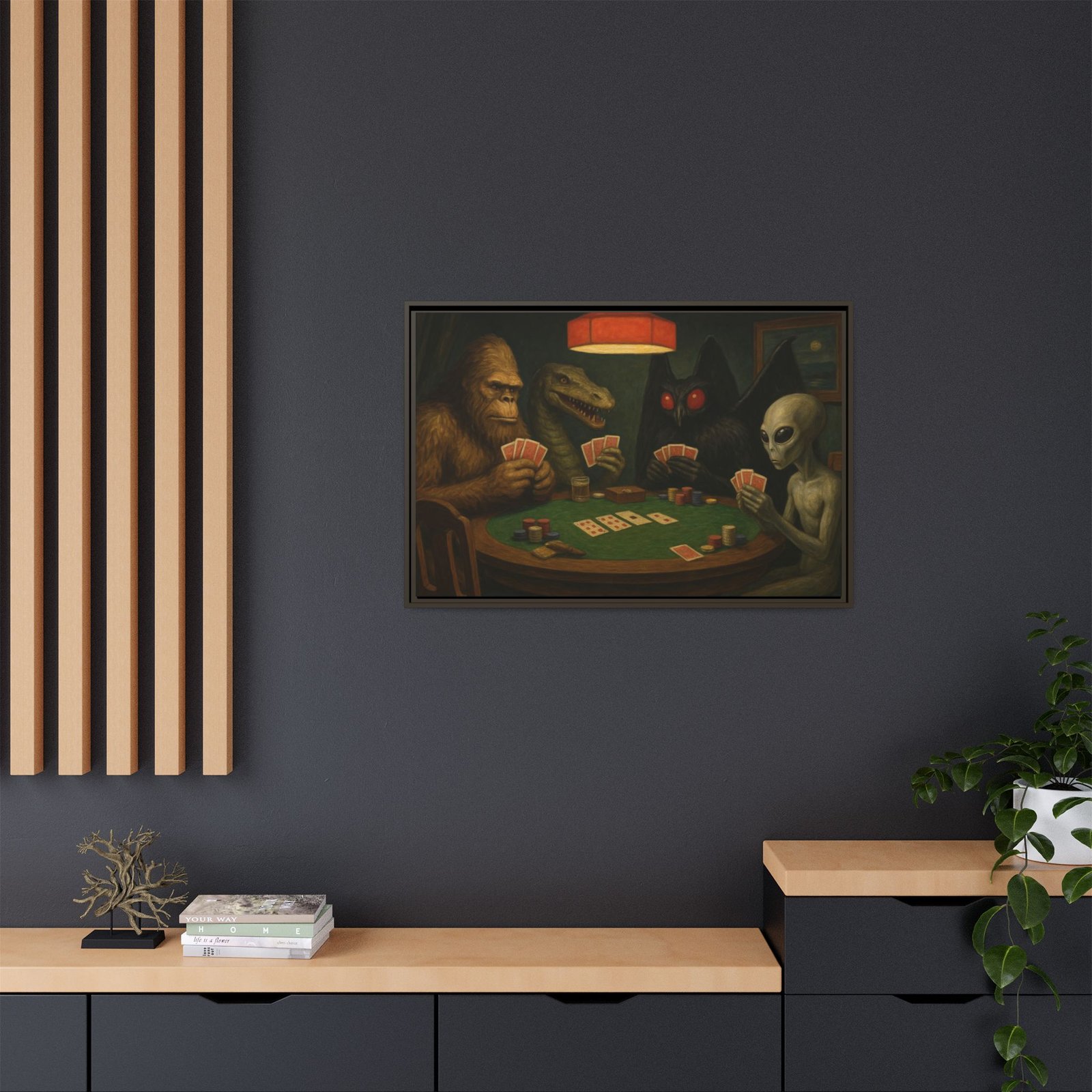 Add a splash of humor, mystery, and personality to your walls—the Cryptids Playing Poker Framed Canvas is art, nostalgia, and a guaranteed conversation piece all in one.