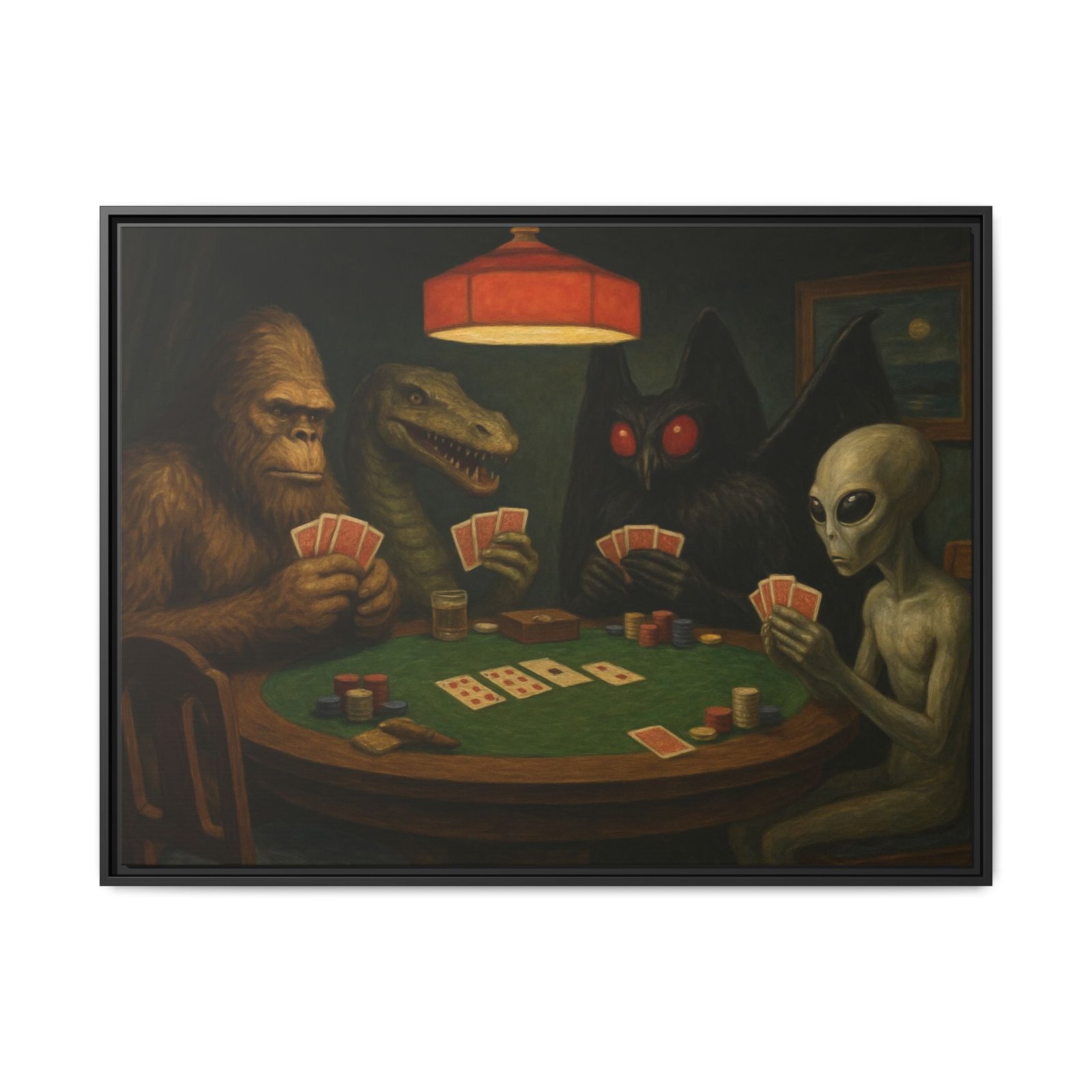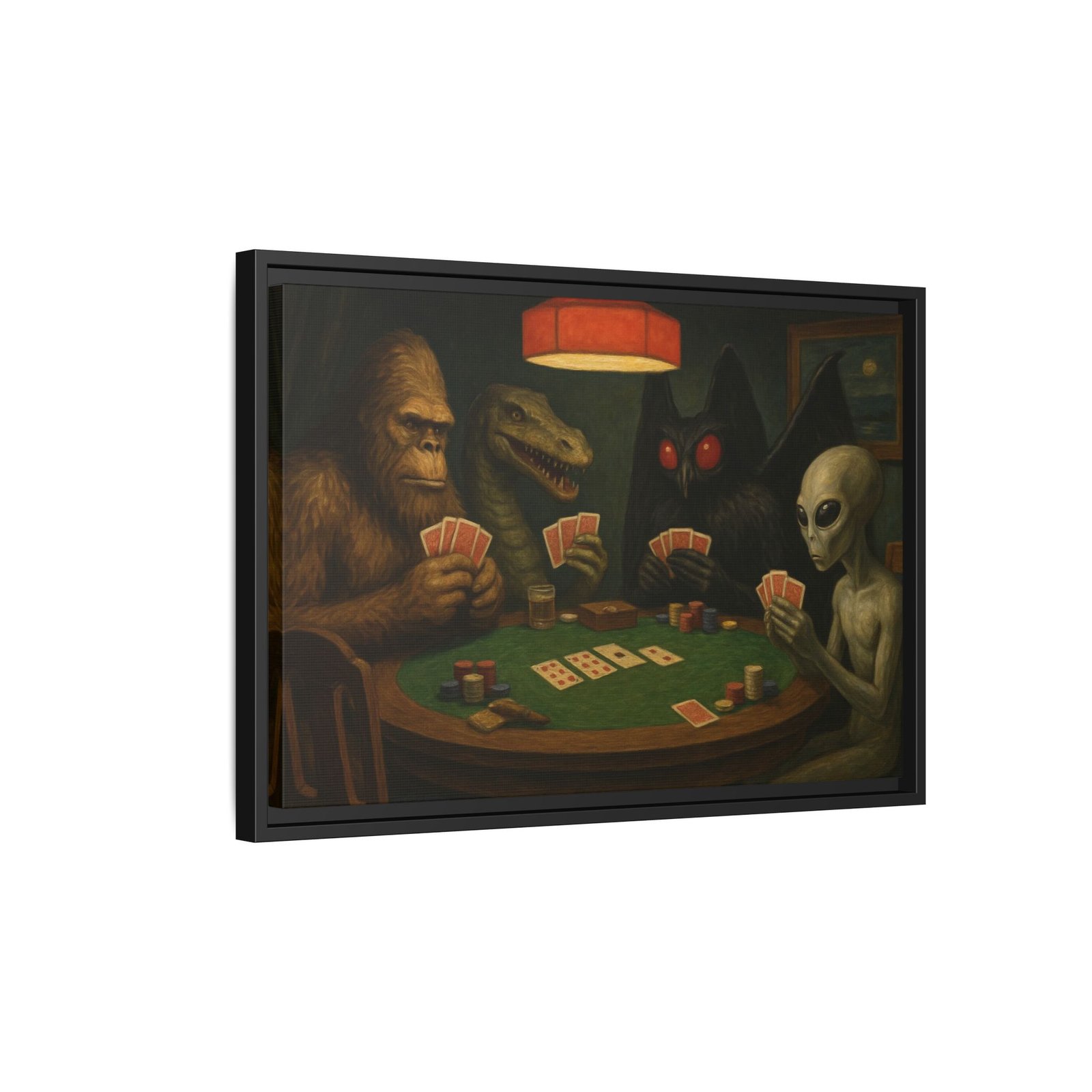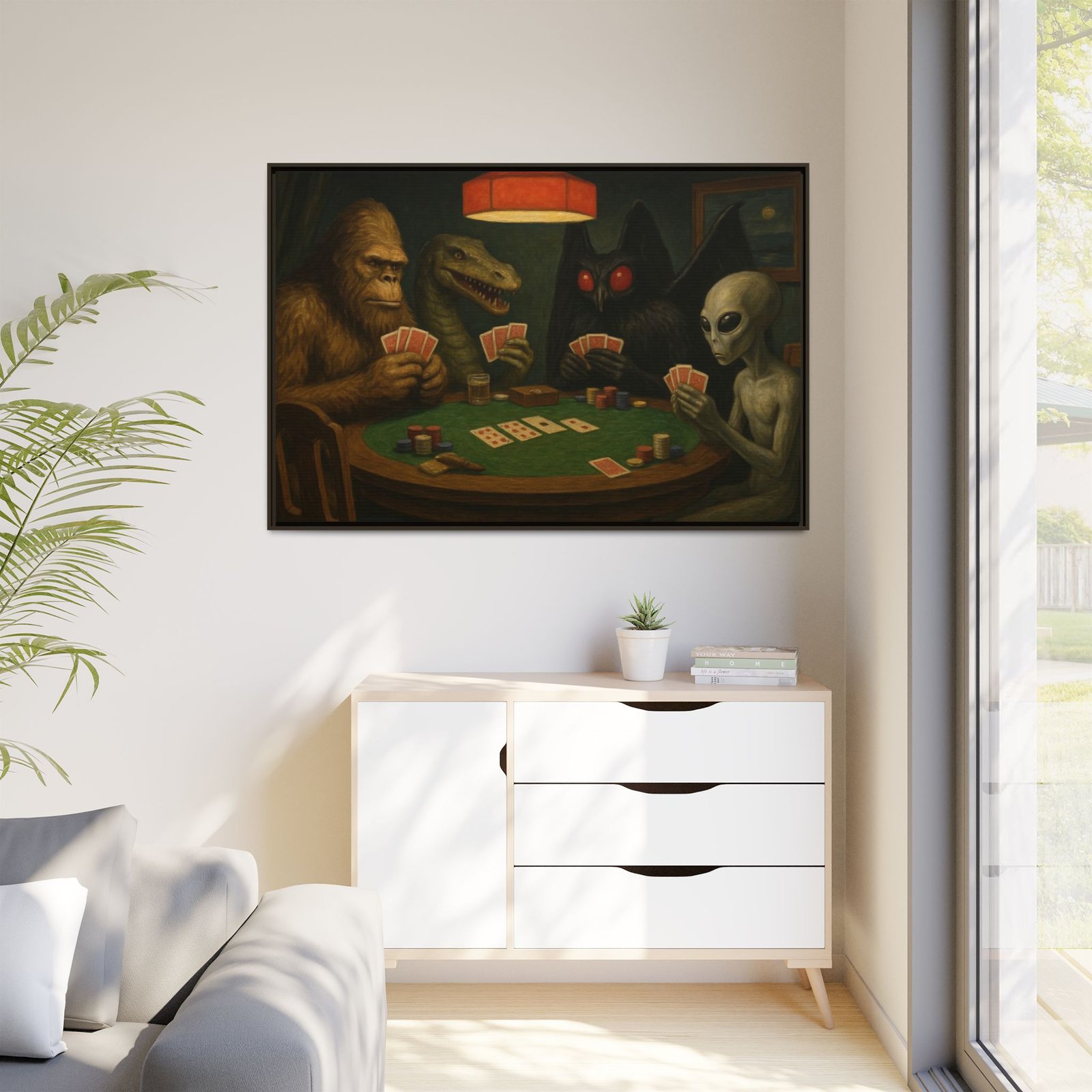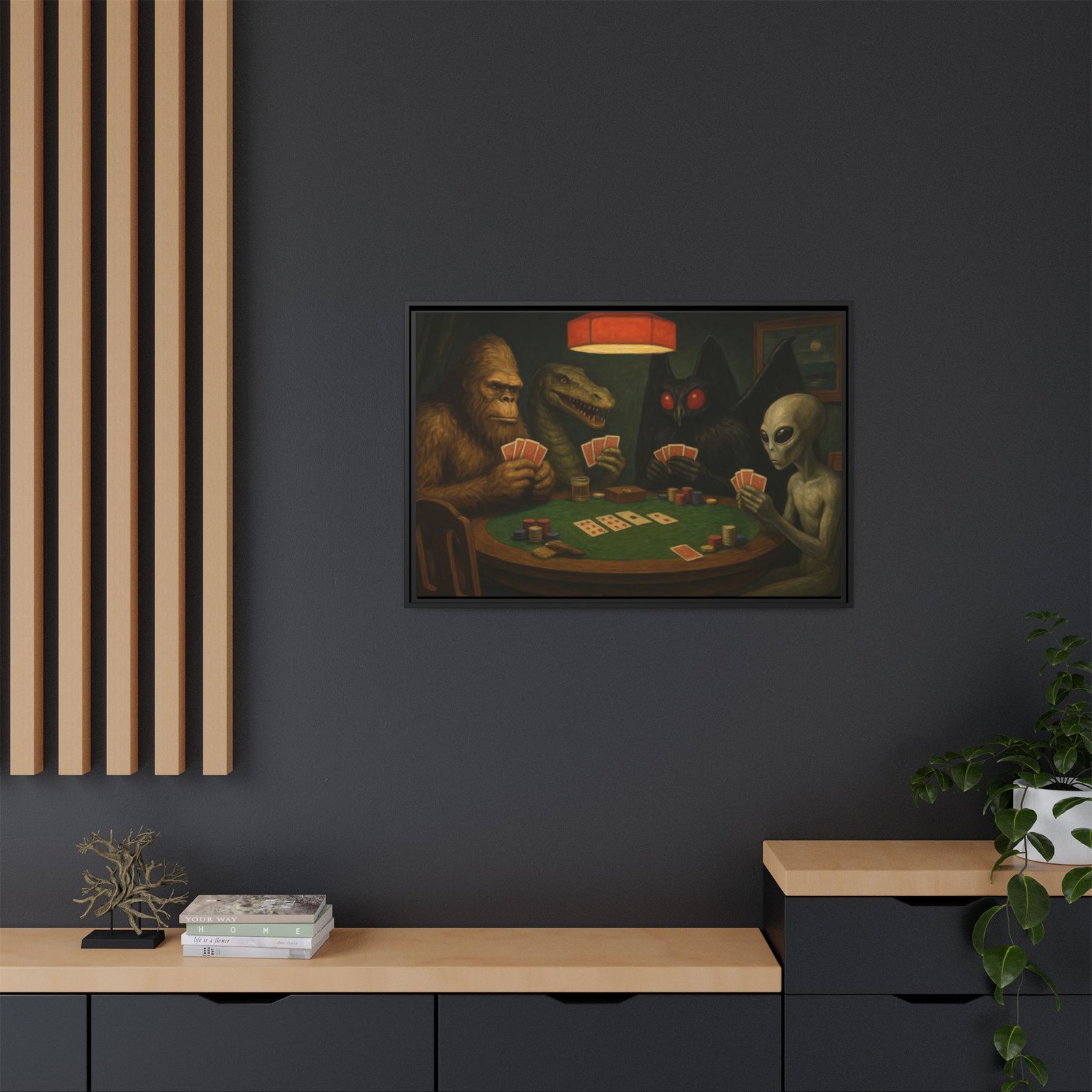 Add a splash of humor, mystery, and personality to your walls—the Cryptids Playing Poker Framed Canvas is art, nostalgia, and a guaranteed conversation piece all in one.
