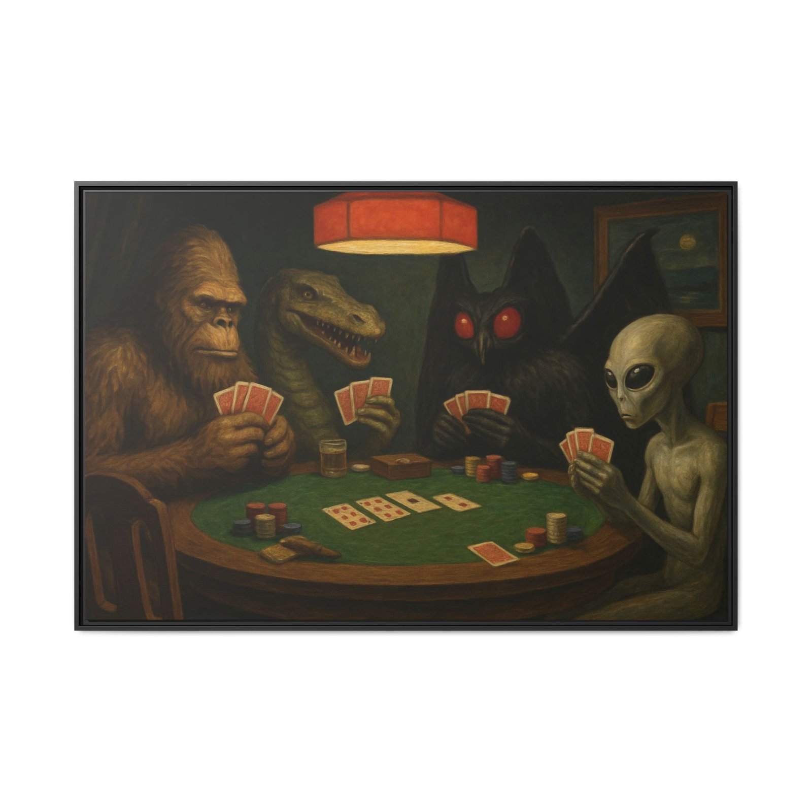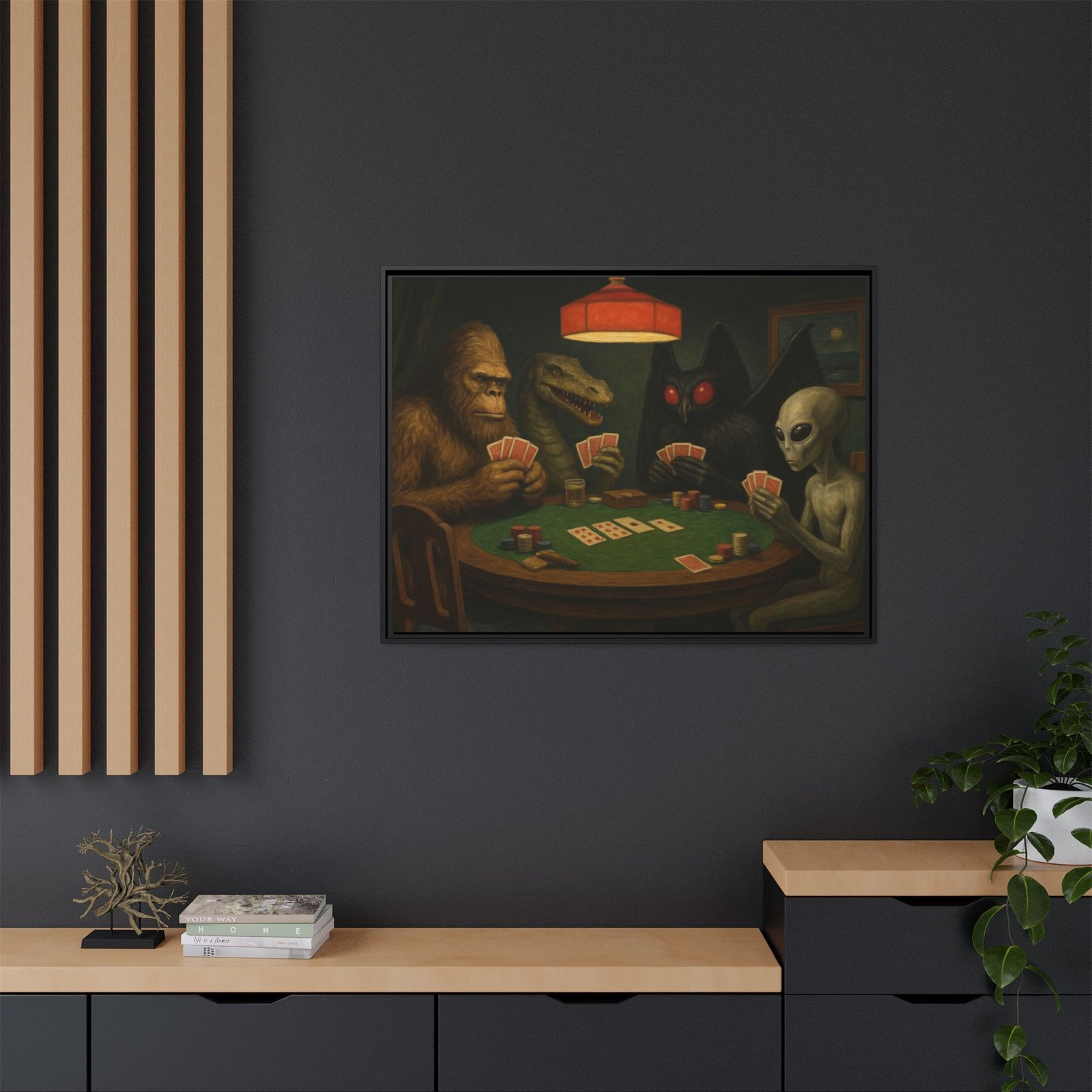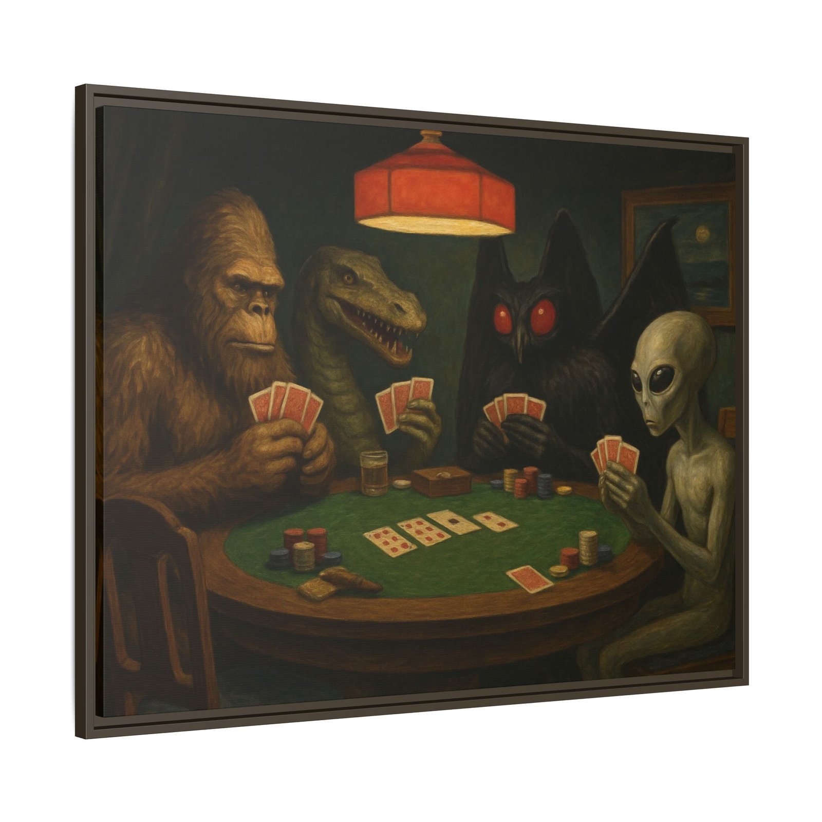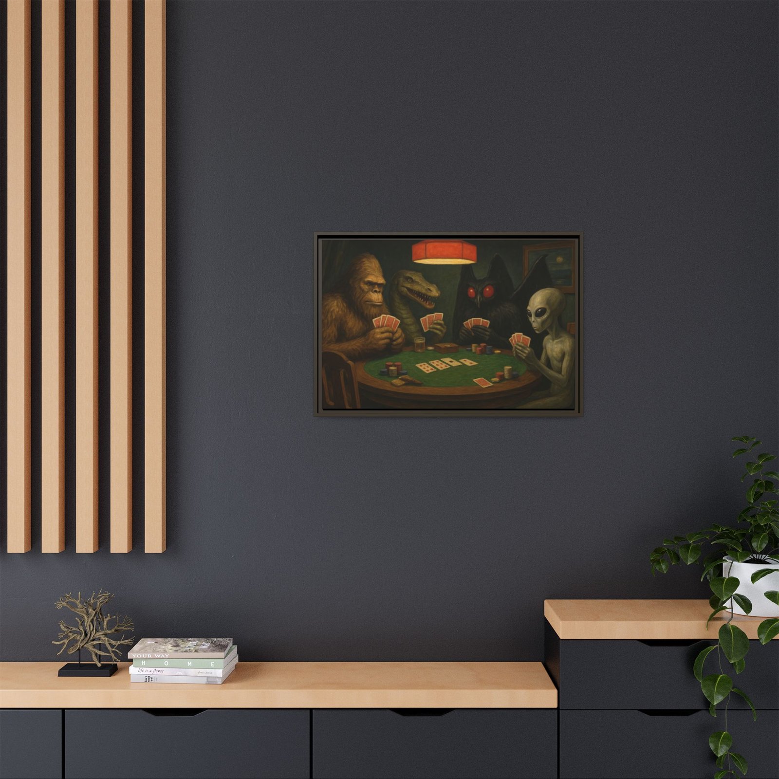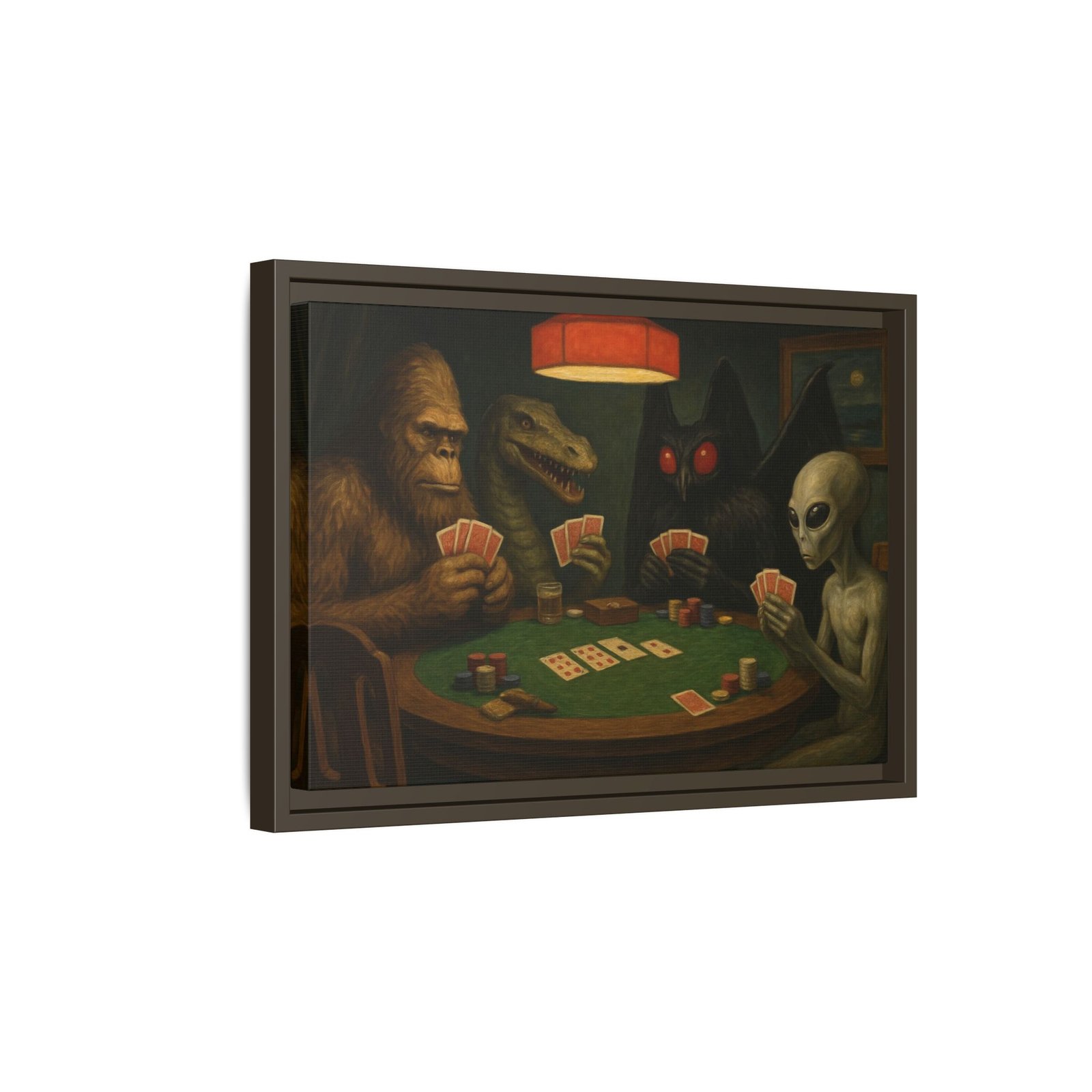 Add a splash of humor, mystery, and personality to your walls—the Cryptids Playing Poker Framed Canvas is art, nostalgia, and a guaranteed conversation piece all in one.