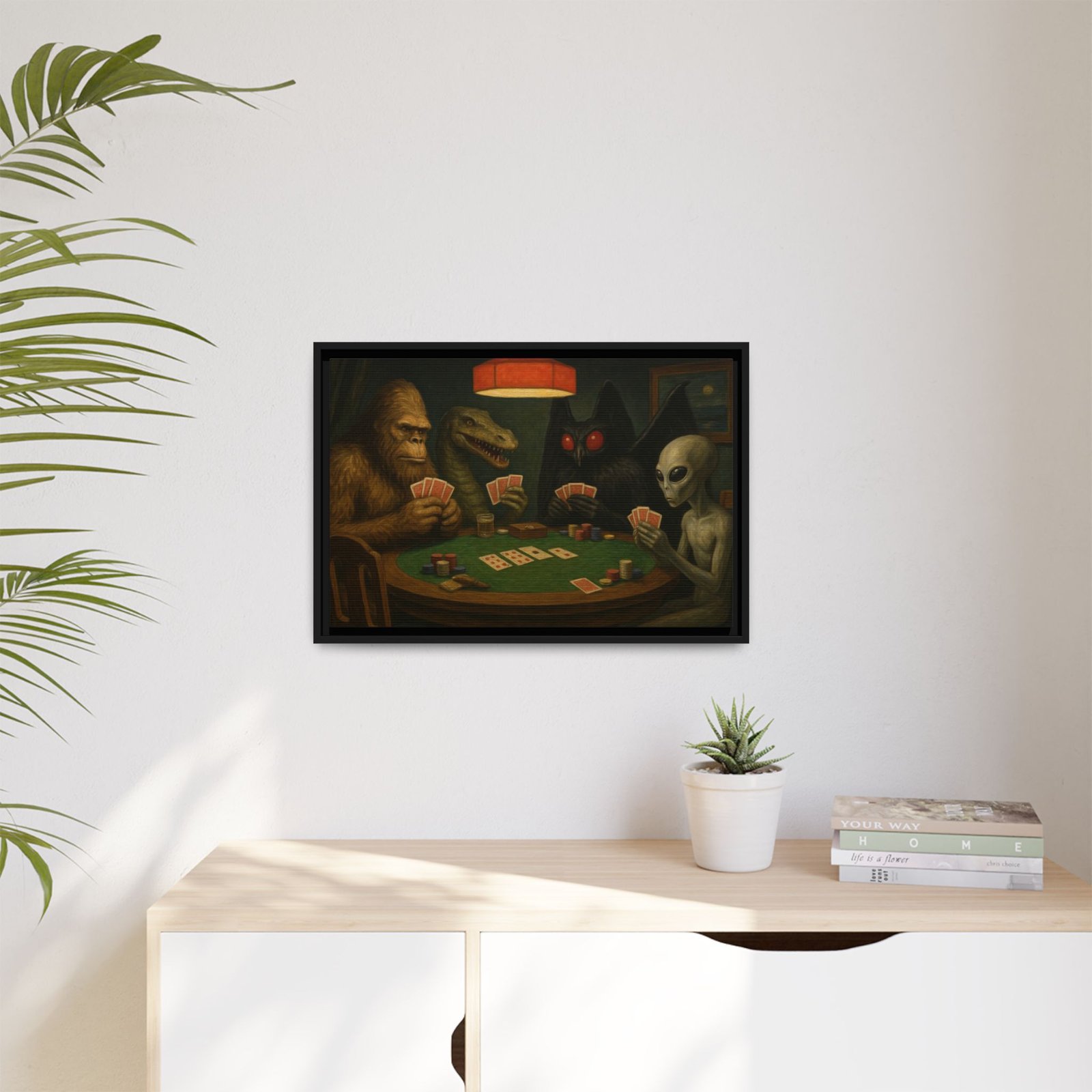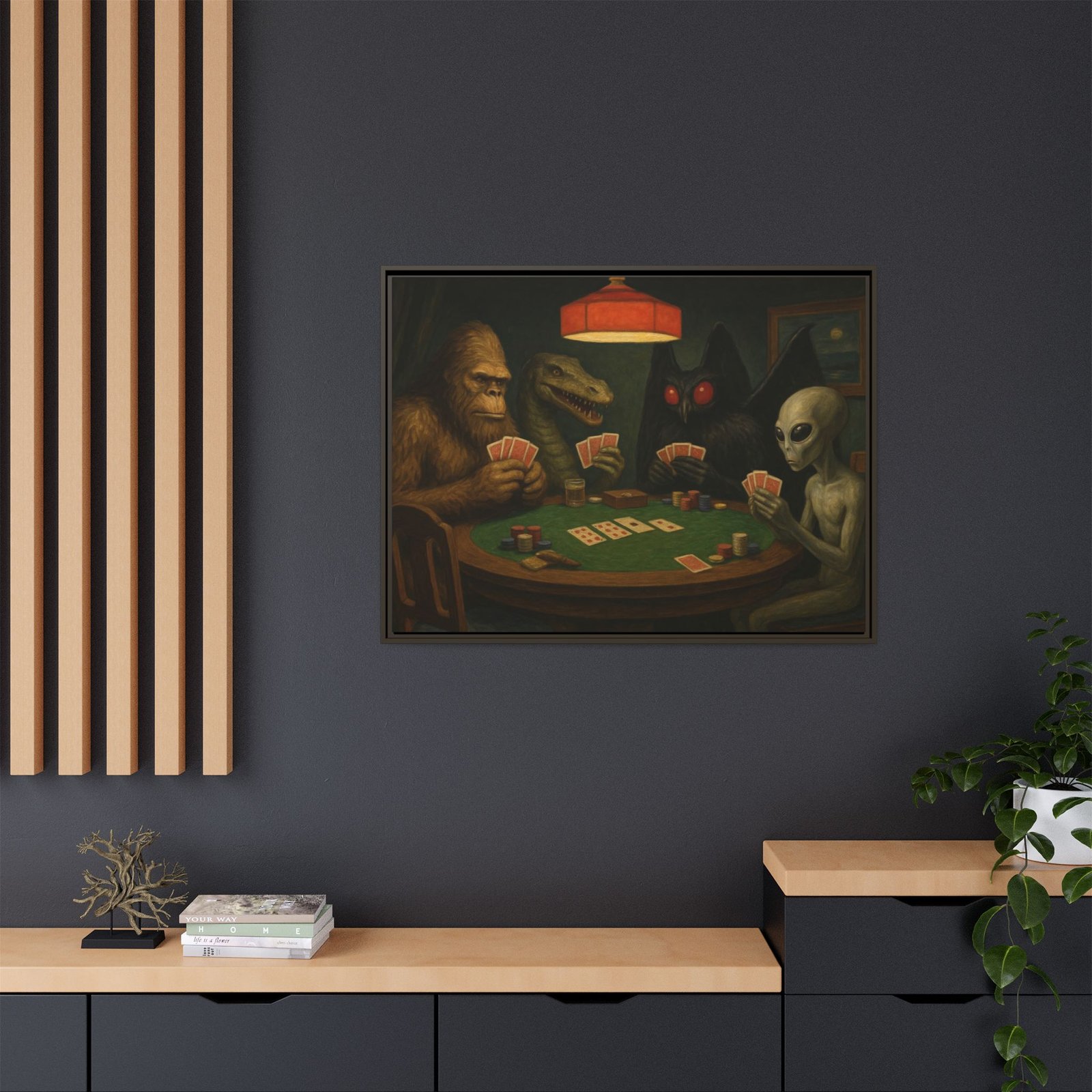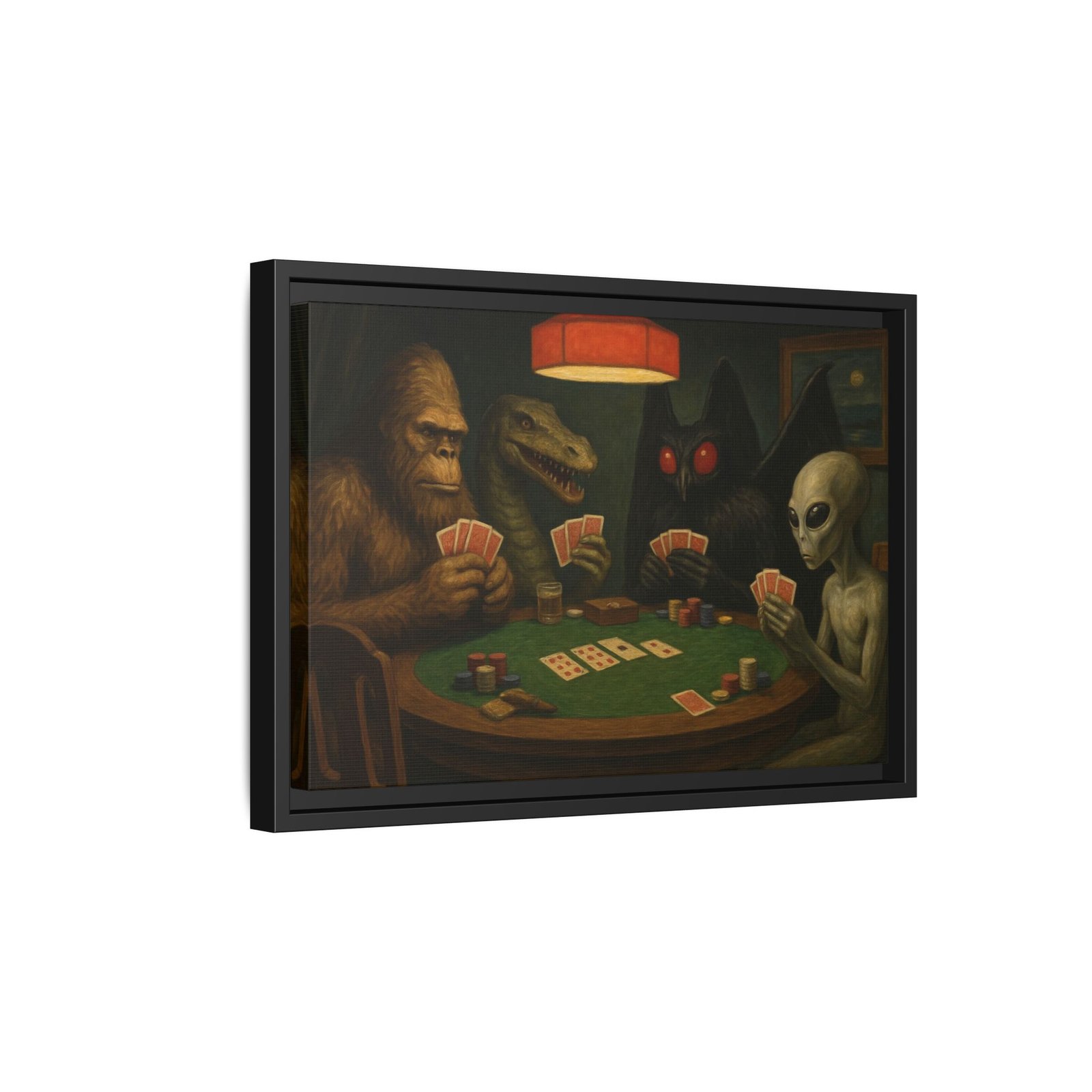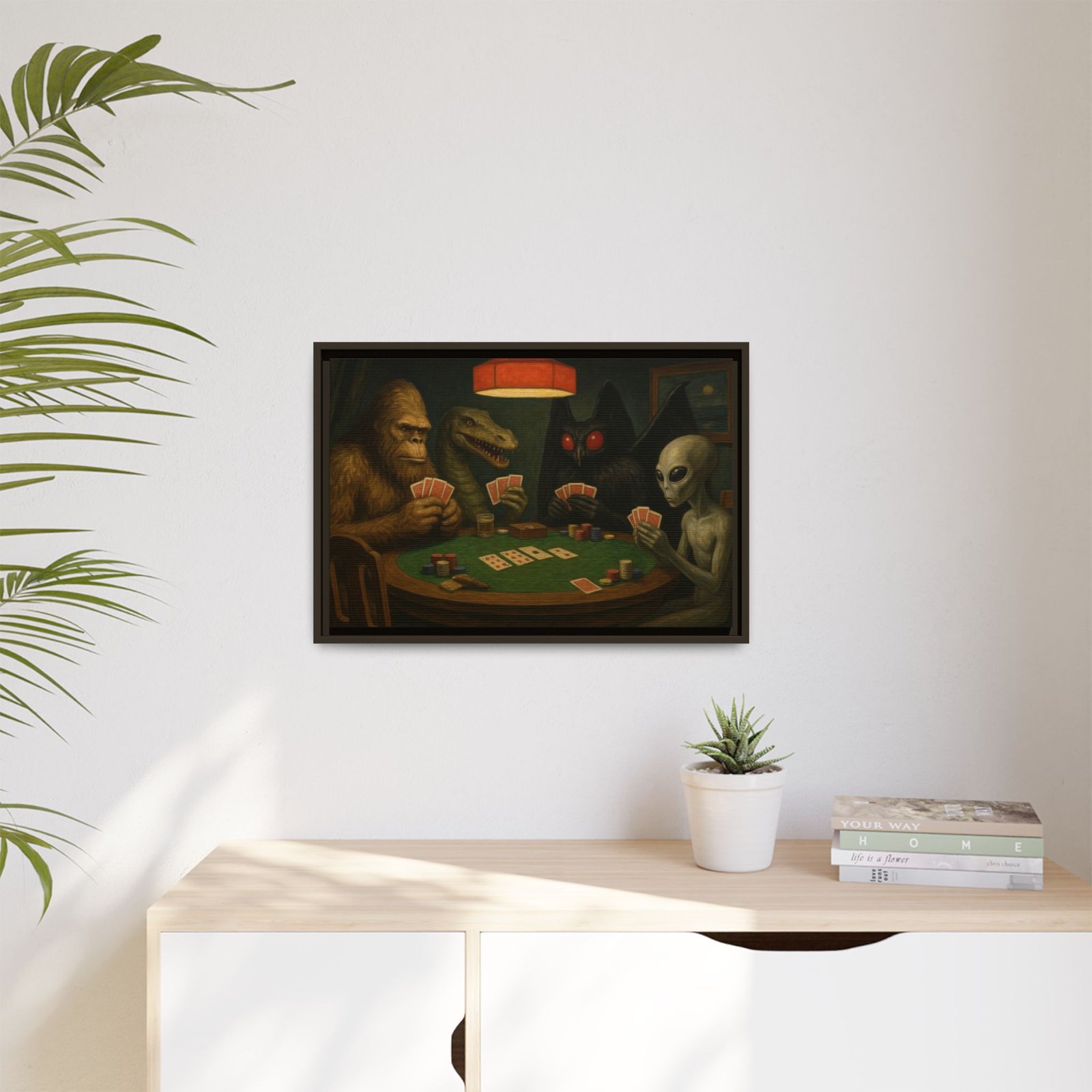 Add a splash of humor, mystery, and personality to your walls—the Cryptids Playing Poker Framed Canvas is art, nostalgia, and a guaranteed conversation piece all in one.
