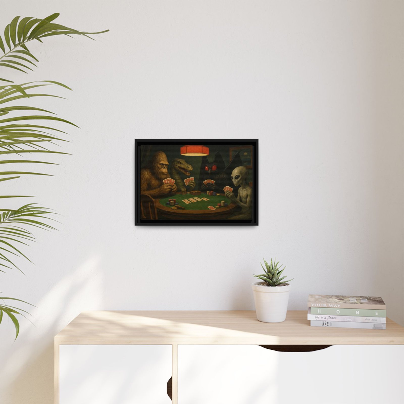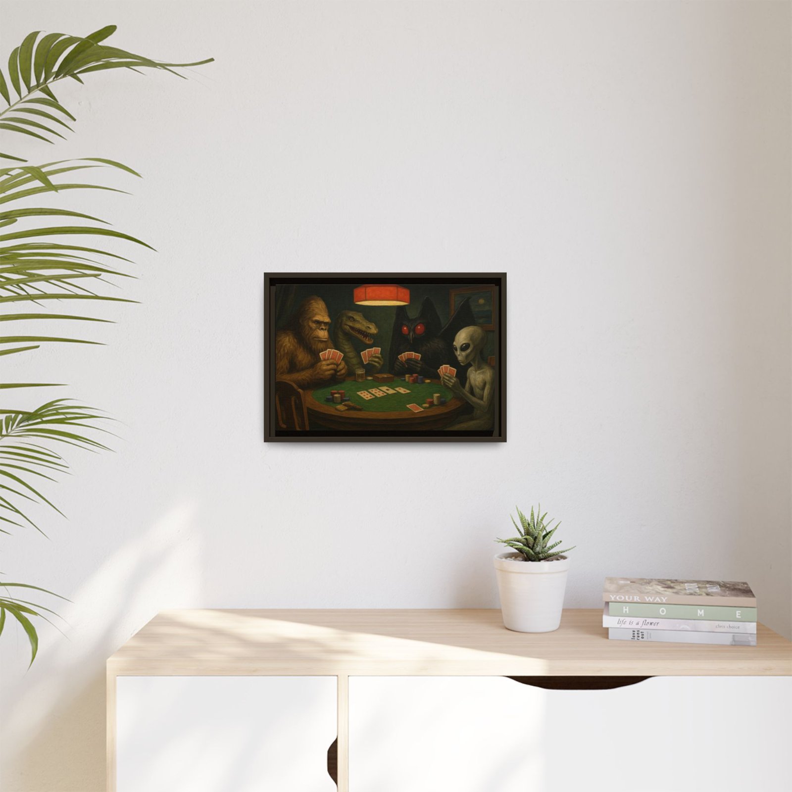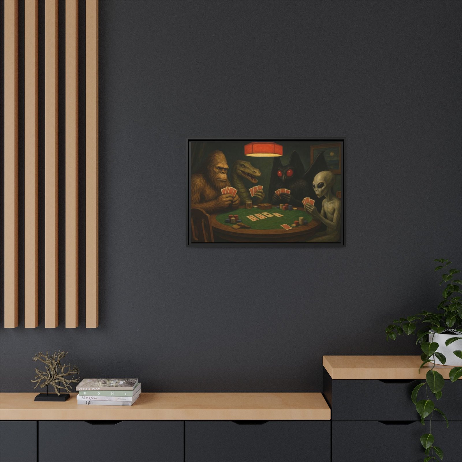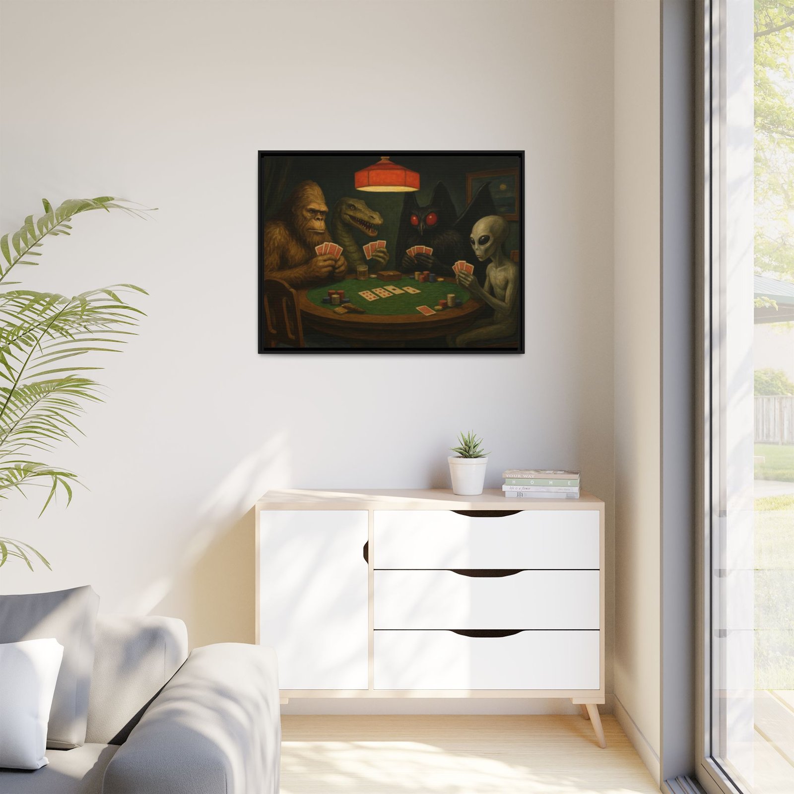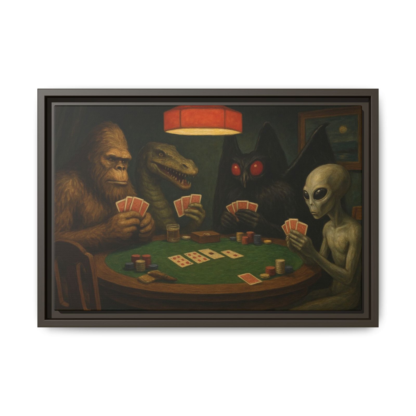 Add a splash of humor, mystery, and personality to your walls—the Cryptids Playing Poker Framed Canvas is art, nostalgia, and a guaranteed conversation piece all in one.