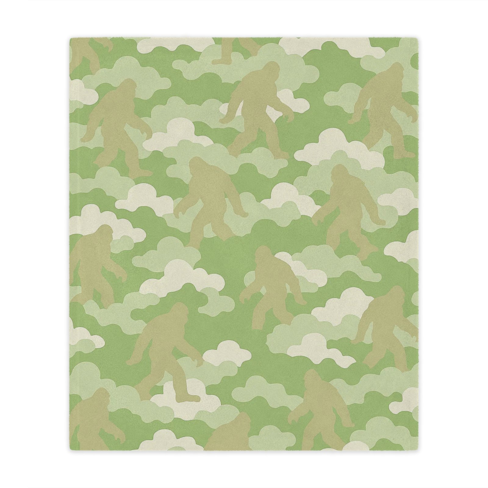 Wrap yourself in the calm of the forest, with just a *hint* of mystery. The Mossy Mystery premium Minky Blanket brings together velvety softness and subtle Bigfoot charm in a soothing palette of light greens and taupes. Its cloud camo design hides playful silhouettes of the world’s most elusive legend, making it the perfect mix of comfort and conversation starter.