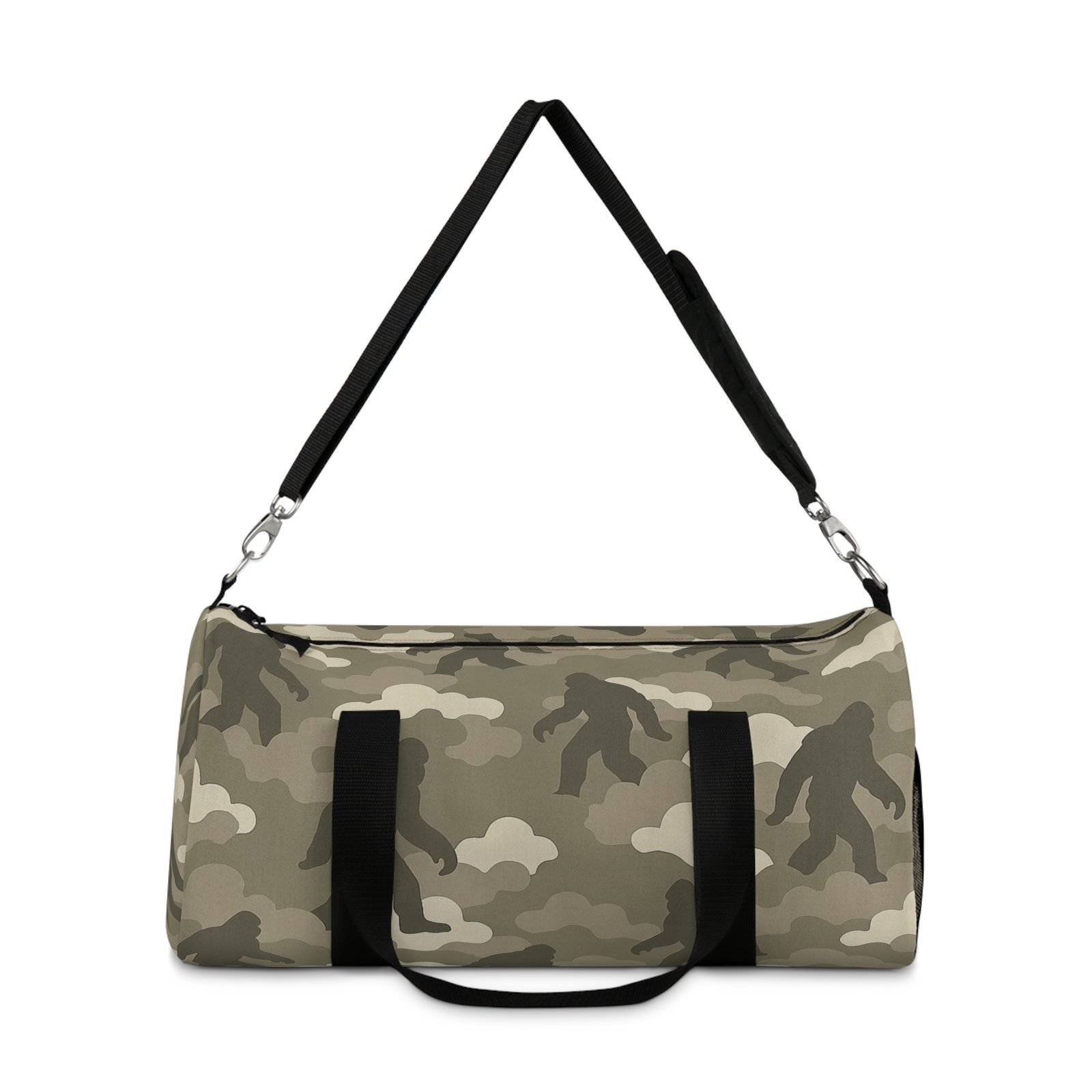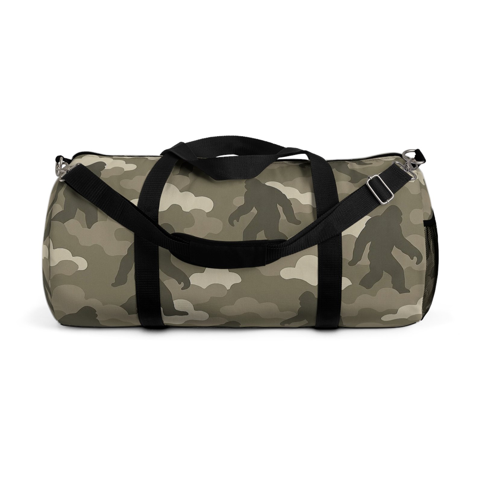 Premium ‘Foggy Footsteps’ Grey Camo x Bigfoot Duffel Bag | Sasquatch Cloud Camo Luggage Bag for Travel, 2 sizes available