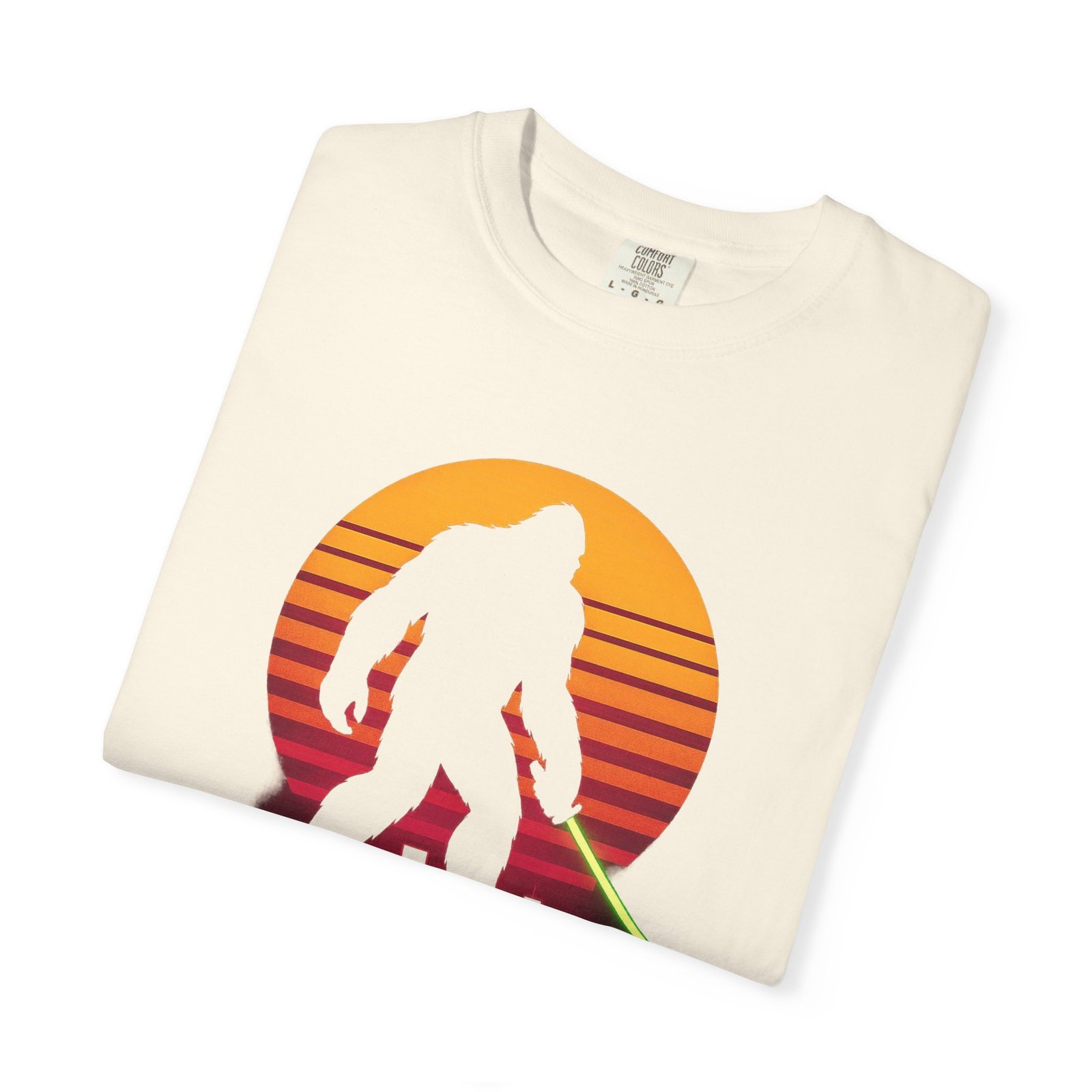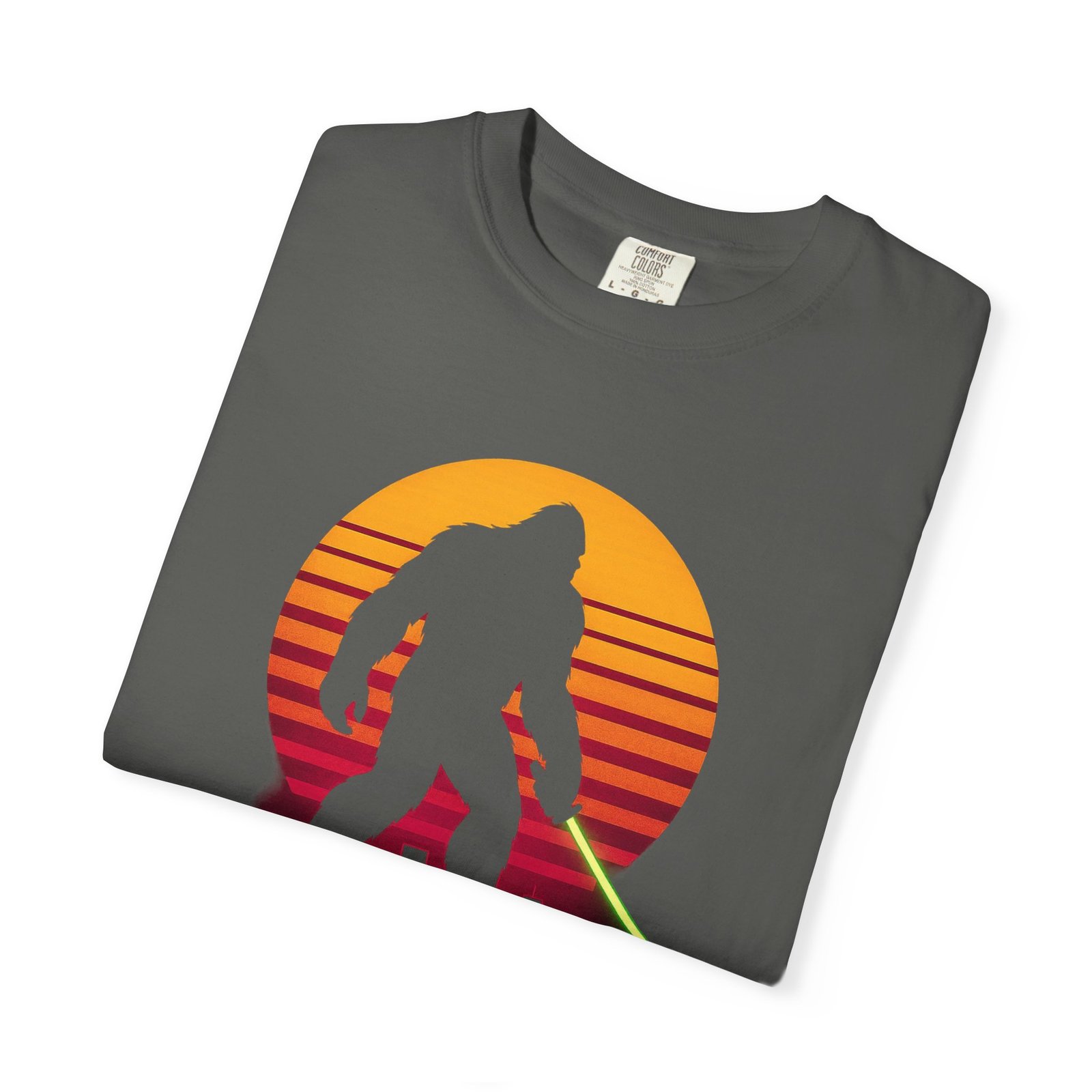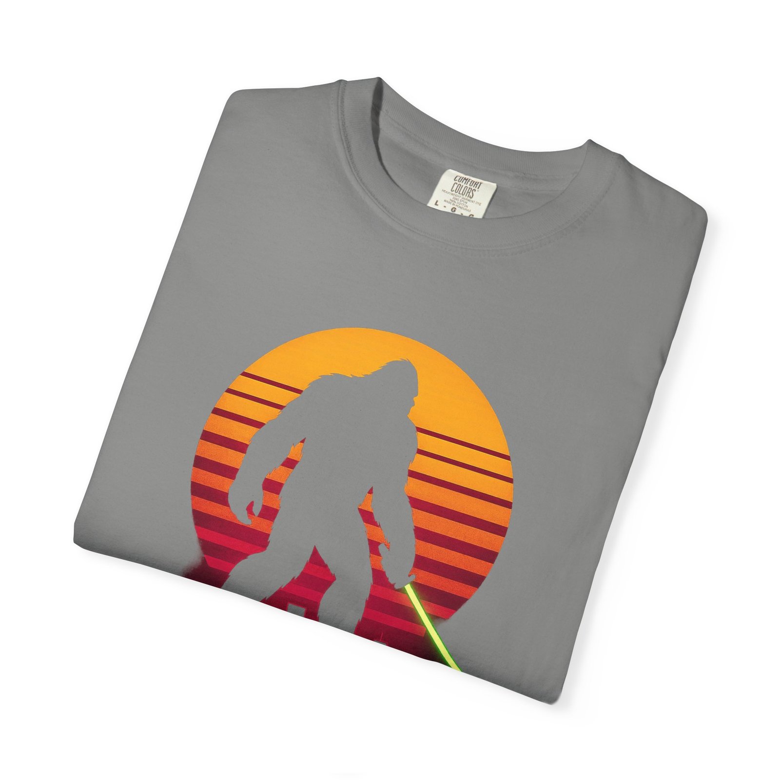 A bold tee for cryptid hunters, synthwave fans, and retro-future dreamers alike.